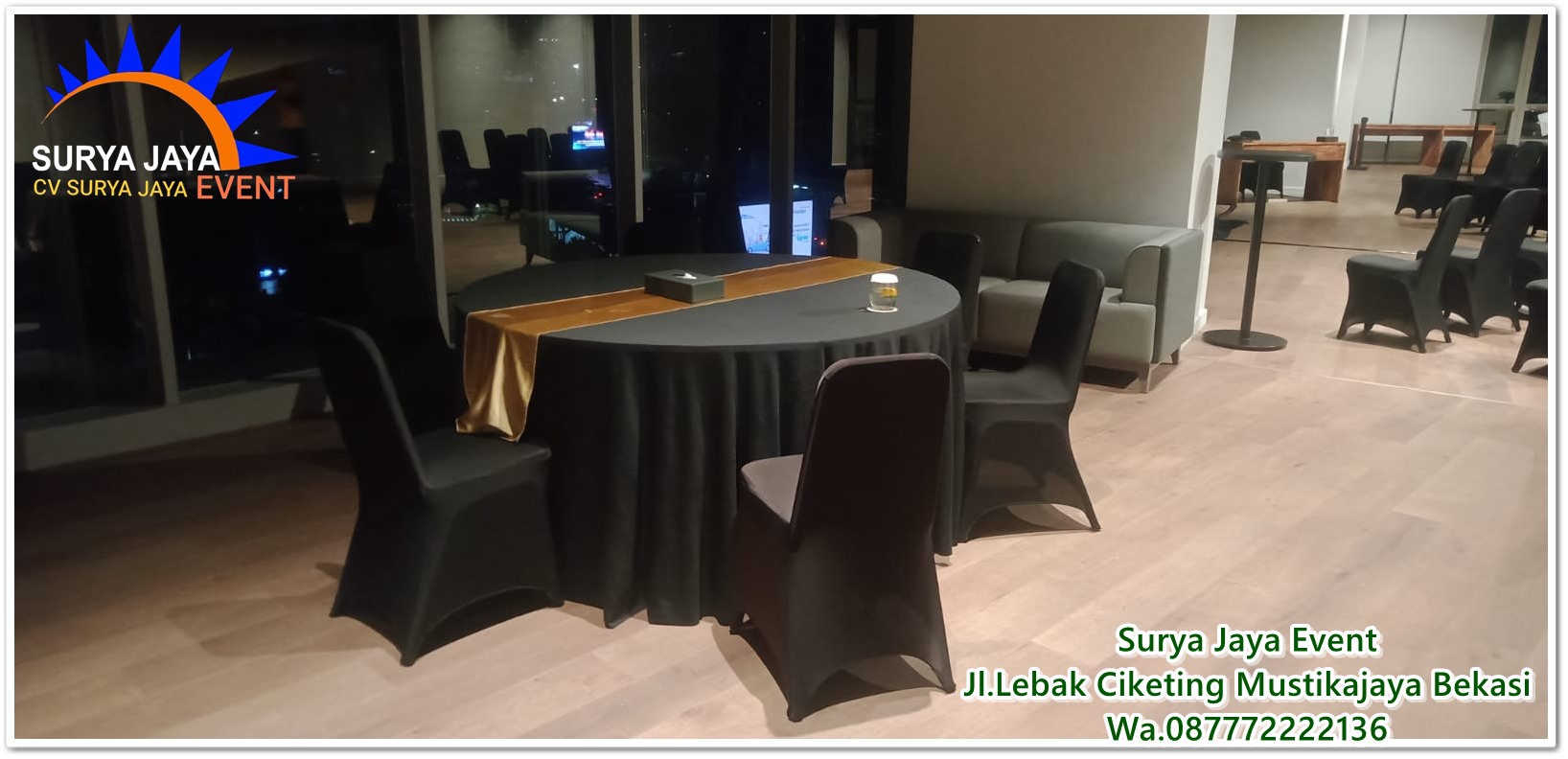 CV.Surya Jaya Event kami pusat Rental Alat Pesta Dan Perlengkapan Event Termurah Di Jabodetabek.Produk yang kami rental kan yaitu Rental meja bundar dilengkapi cover hitam tebar dengan runner gold dan untuk kursi futura nya dilengkapi sarung kursi ketat hitam.Untuk warna cover,runner dan sarung kursi tersedia banyak pilihan jadi anda boleh pilih sendiri sesuai keinginan.Untuk ukuran meja bundar tersedia banyak pilihan diantaranya : meja bundar d:120 cm,meja bundar d:160 cm,meja bundar d:180 cm.Silahkan pilih ukuran meja bundar sesuai kebutuhan event anda.