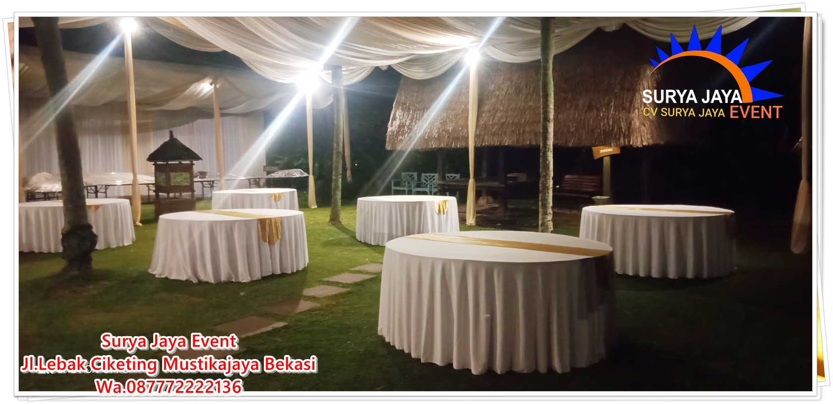 Sewa Meja Bundar Bekasi Selatan Siap Bongkar Pasang Tepat Waktu.Meja bundar yang kami sewa kan ini dilengkapi taplak tebar putih dengan runner gold pernah disewa untuk acara di Plataran Krindari.Untuk taplak meja dan runner tersedia juga pilihan warna lainnya.Taplak meja punya kami kualitasnya sesuai standar hotel sehingga menjadikan meja bundar terlihat mewah dan menarik.Untuk ukuran meja bundar ada beberapa ukuran mulai dari meja bundar D:120 cm,meja bundar D:160 cm,meja bundar D:180 cm.Kami sediakan meja bundar dengan jumlah ribuan unit dan siap disewakan setiap saat baik dengan skala besar maupun skala kecil.