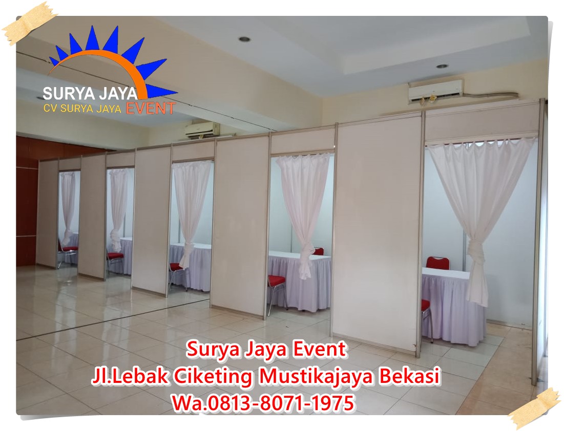 CV.Surya Jaya Event sedia jasa Sewa Partisi R8 Bebas Ongkir wilayah JABODETABEK dengan syarat dan ketentuan yang berlaku khusus pemesanan minimal order.Partisi kami ada yang berbentuk kamar dan ada juga yang berbentuk dinding.Partisi r8 bisa untuk kamar vaksinasi,kamar ganti pakaian dll.Untuk partisi r8 disewa per meter dan untuk tingginya 2,5 meter.Dijamin partisi r8 punya kami kualitasnya bagus,kokoh dan kuat.Partisi r8 terbuat dari almunium dan multiflek yang sangat tebal sehingga tidak nerawang.Partisi r8 punya kami sudah banyak yang sewa lho untuk berbagai acara.Jadi anda tidak perlu ragu untuk sewa partisi r8 dikami.Dijamin produk sewa kami ini berkualitas dan harga nya terjangkau untuk semua kalangan.Selain partisi r8 anda juga bisa sewa alat pesta dan perlengkapan acara lainnya seperti :
